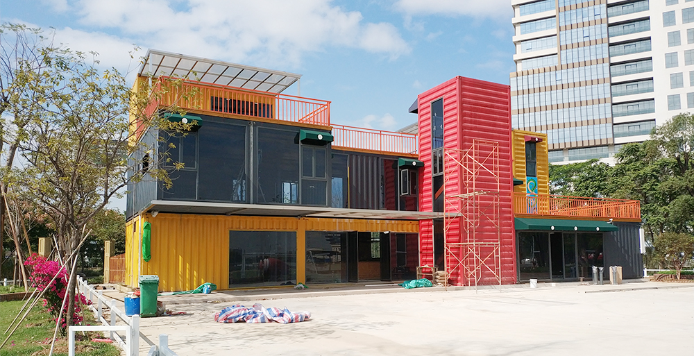 根據(jù)商業(yè)用途將多個(gè)集裝箱房組合改裝,形成具有創(chuàng)意設(shè)計(jì)感的現(xiàn)代化商業(yè)商店...