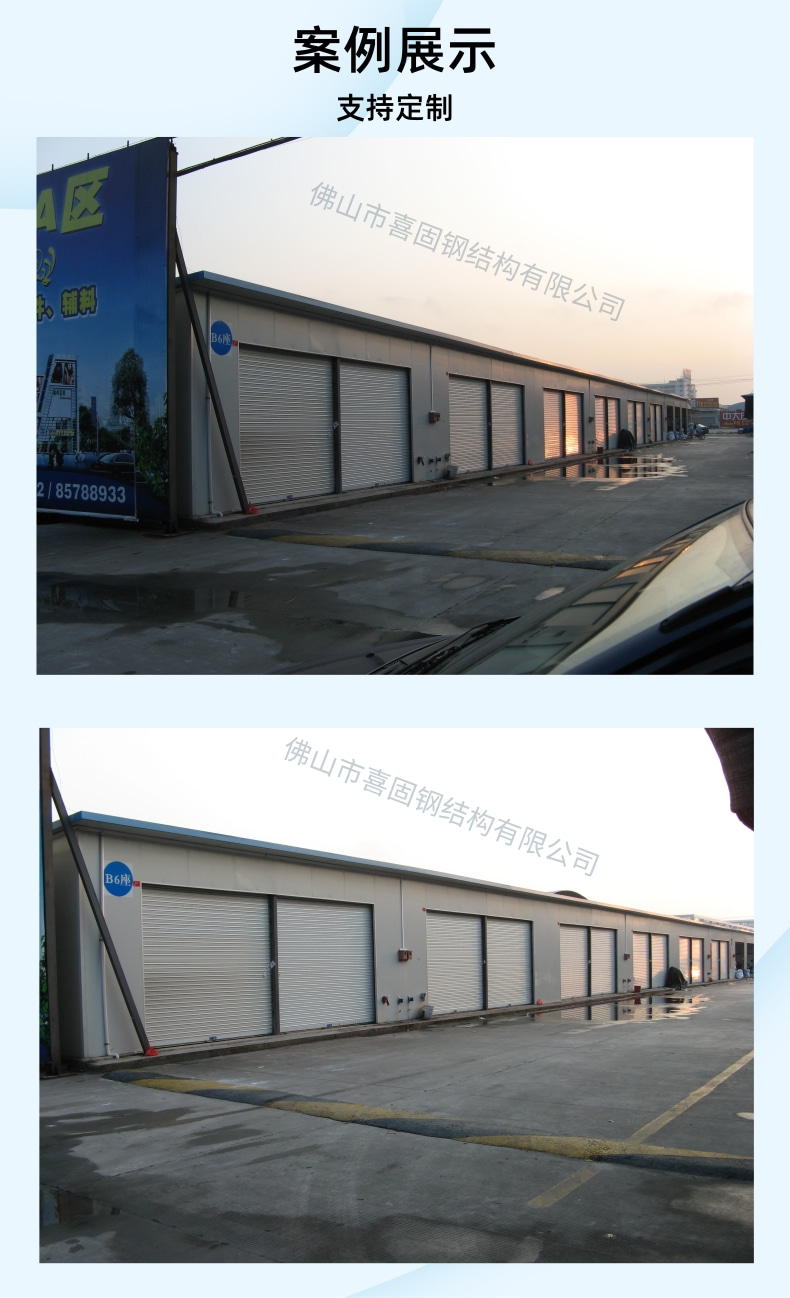 喜固商鋪活動(dòng)板房是一種以輕鋼為骨架,以?shī)A芯板為圍護(hù)材料,以設(shè)計(jì)圖紙的設(shè)計(jì)要求進(jìn)行空間組合,構(gòu)件采用螺栓連接,全新概念的環(huán)保經(jīng)濟(jì)型彩鋼活動(dòng)房屋,可方便快捷地進(jìn)行組裝和拆卸,安裝、拆遷方便。