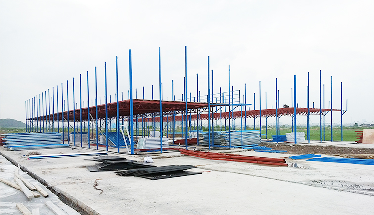 | 2、鋼構架安裝:板房承重骨架立柱安裝、橫梁安裝、屋架安裝。 |