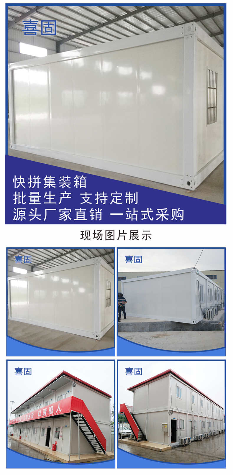 公司生產(chǎn)的“喜固”牌系列活動(dòng)板房是在日式活動(dòng)板房及國(guó)內(nèi)同類產(chǎn)品的基礎(chǔ)上經(jīng)過(guò)論證實(shí)踐后加改進(jìn)而成的,從而使“喜固”牌系列產(chǎn)品達(dá)到快速安裝、拆遷容易、美觀、安全、節(jié)約成本等特點(diǎn)。